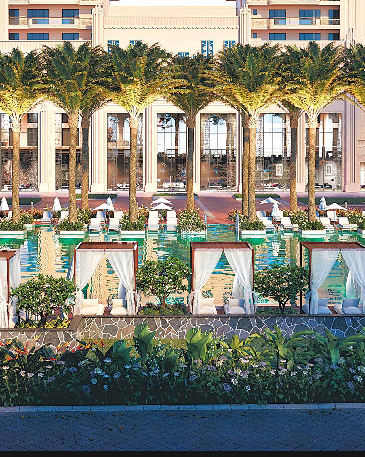 Modern façade, sky-view balconies, private lift access, wide landscaped pathways, and signature architectural identity.