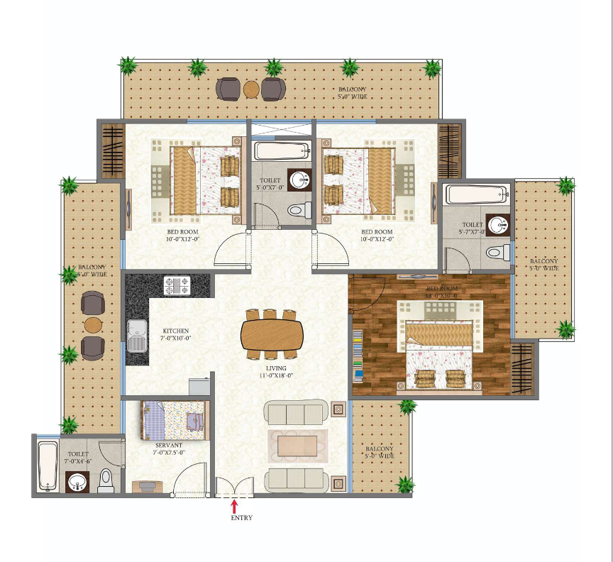3 BHK + Servant