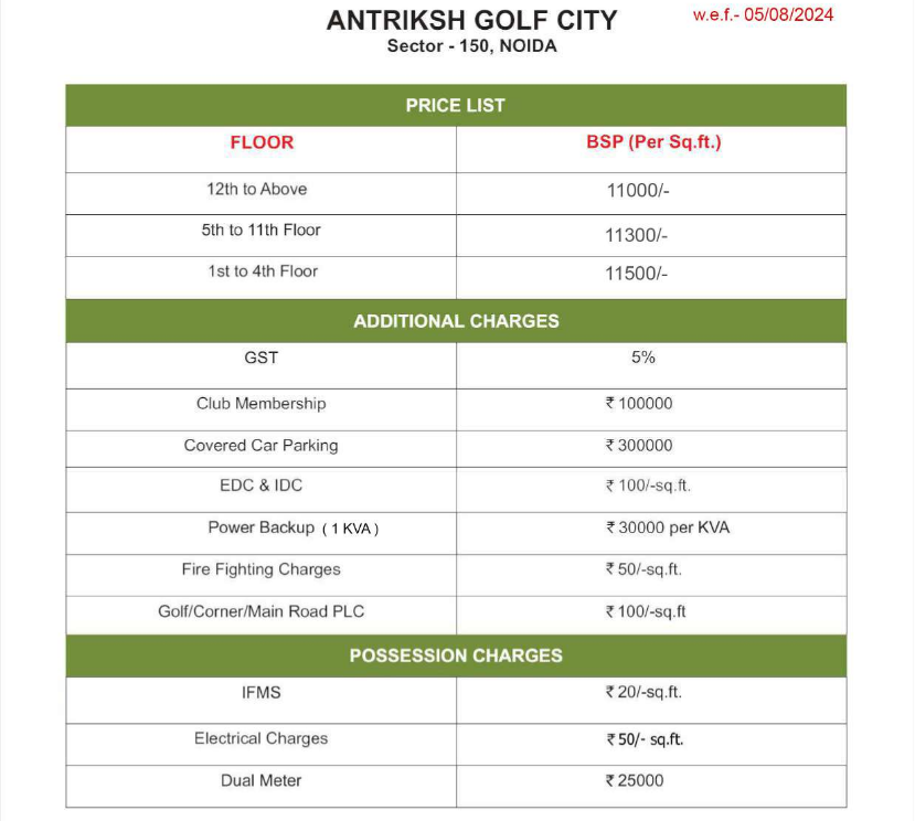 For those considering purchasing a residence within Antriksh Golf City, information regarding room layouts is included in our downloadable Floor Plan Option Section on our Website. Pricing & More about the Location of Sector 150 and Sector 149 please refer to Antriksh Golf City Price List and Antriksh Golf City Price/Sq Ft sections on the Antriksh Golf City website.