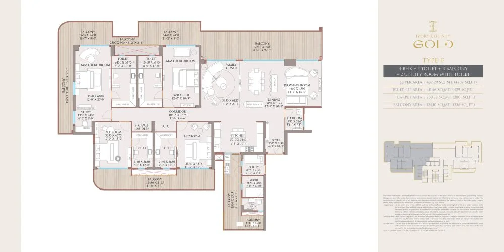 ivory county floor plan 4 BHK + 5T + Servant + 4 Balcony (3987 SQFT)